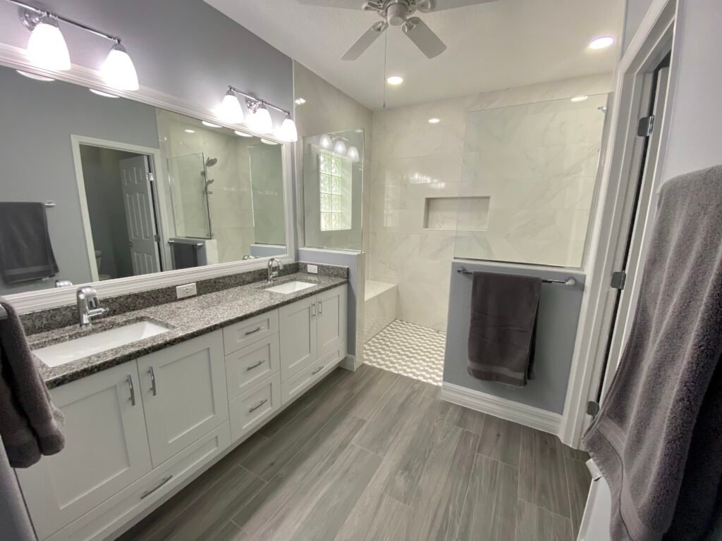 Bathroom demo - Dreamwerx Kitchen & Bath - dreamwerxkb.com Finished bath remodel - Dreamwerx Kitchen & Bath - dreamwerxkb.com